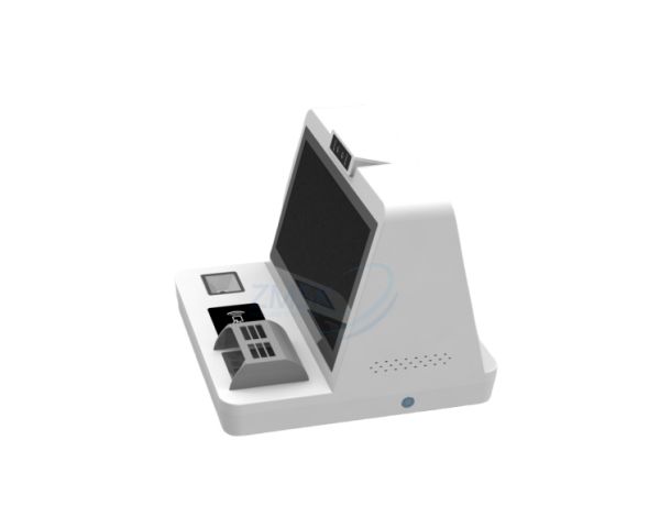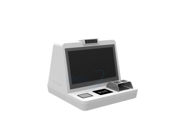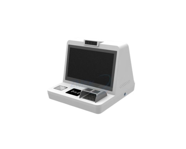 This desktop kiosk has a compact and user-friendly design, making it suitable for placement in various locations such as retail stores, restaurants, and service centers. Its small footprint allows it to fit easily on countertops or desks without taking up too much space.